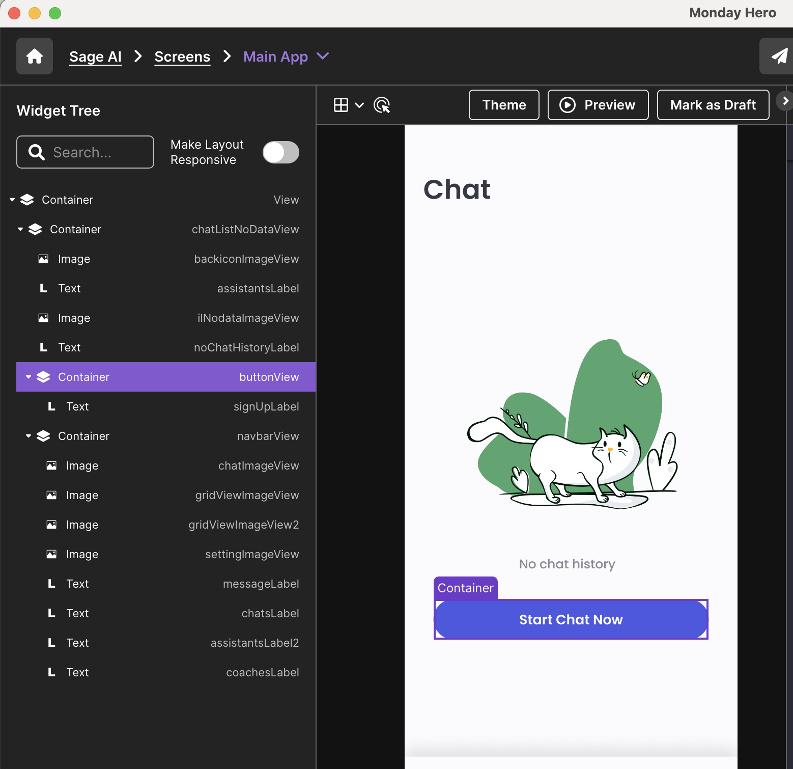 **Problem:** Once you're sure you've completed the first 3 elements on the checklist, you're ready to inspect the layout. Monday Hero automatically creates the layout elements once the 'Make Layout Component' button is clicked. Then, it will automatically create rows, columns, and stacks.  Once you preview the code result if the layout doesn't become responsive the way you'd like, then the layout problem should be fixed. If they are not grouped correctly, the responsive layout won't work as expected.