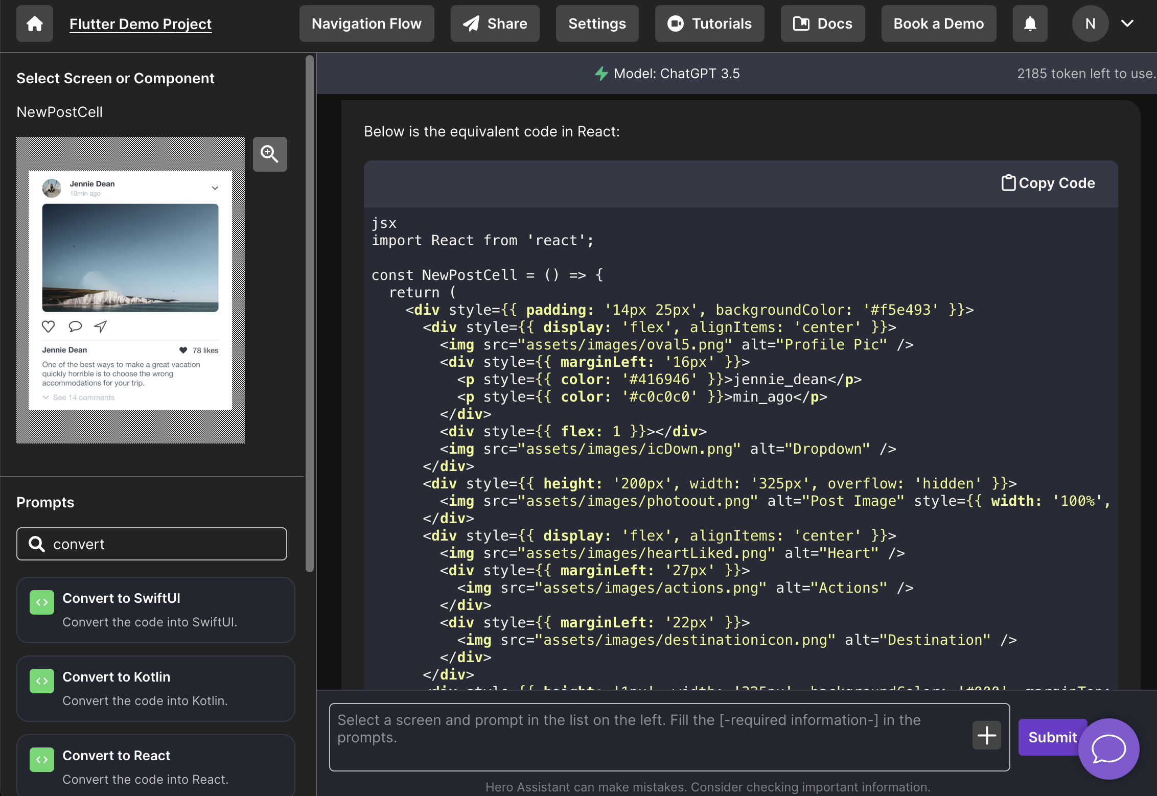 Once you start the Assistant, it will automatically generate the Flutter code.